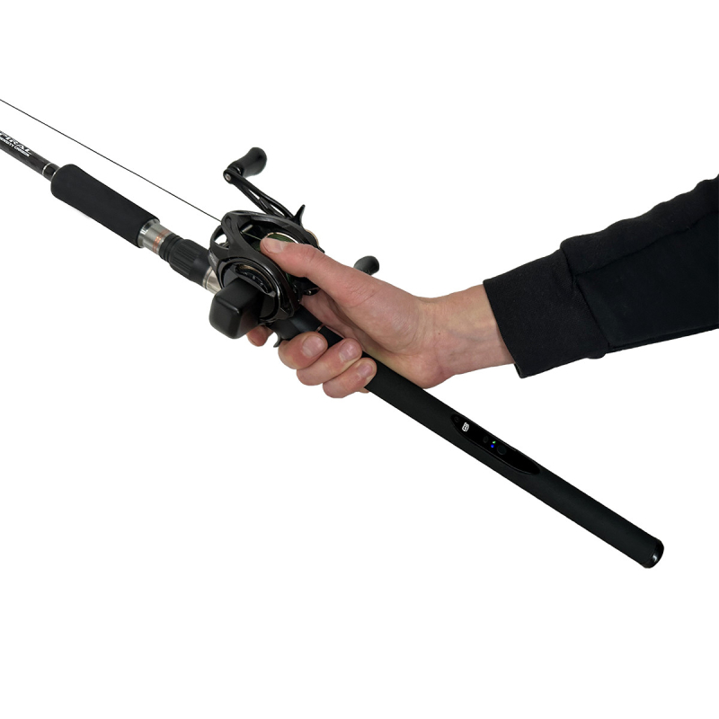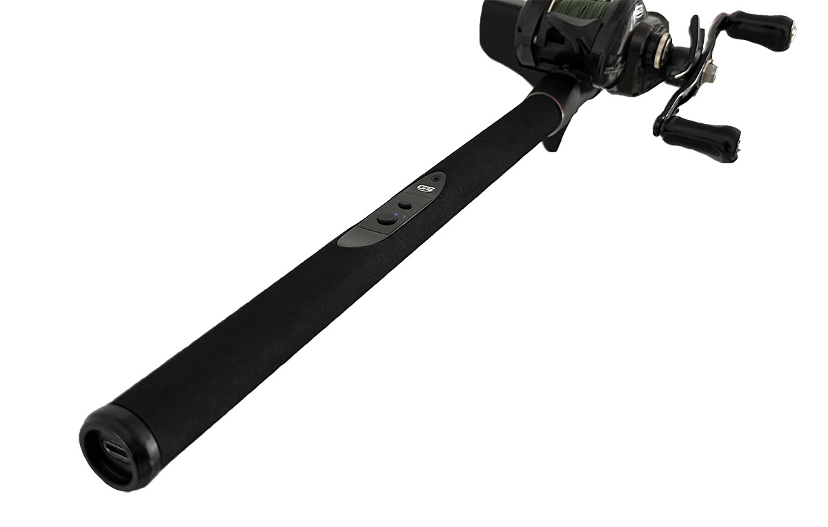 The camera is charged directly through a USB-C port located at the bottom of the fishing rod, allowing fast, convenient charging without removing any components.